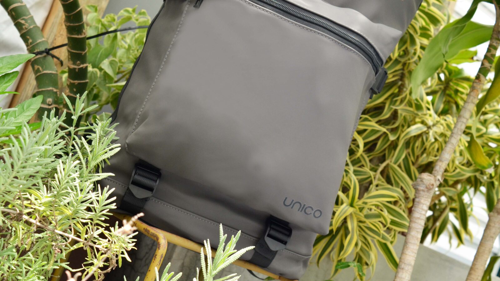 Water-resistant 41-liter synthetic leather backpack. It has two compartments, the main one with a pocket for a 15.6-inch notebook, zipper closure and Velcro strap, buckles on the sides for a better fit and a suitcase hitch.